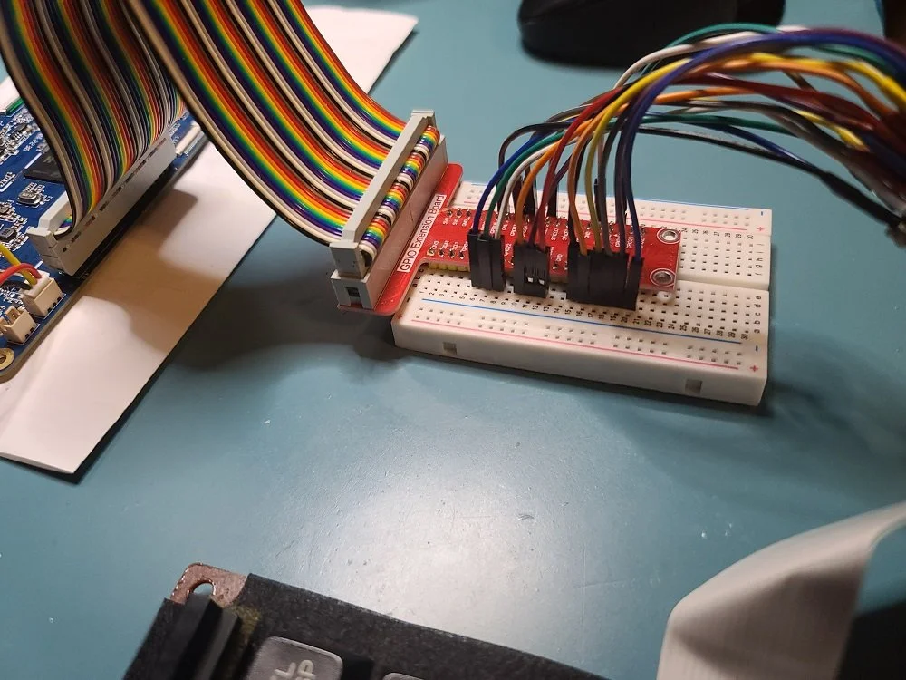 Once I had all 18 contacts wired up, it was a simple matter to get it all connected to my breakout board that connected to my 40-pin ribbon for the PINE A64’s GPIO connector. By the way, the GPIO connector conveniently has the exact same pinout as the Raspberry Pi 2. Must mean there are plugin boards available that work on both the A64 and the Pi..