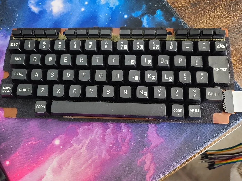 My Tandy 102 keyboard presented a problem for these features and it became clear that the mechanical locking keyswitches themselves would need to be swapped out and replaced with “regular” momentary-contact keyswitches from a donor keyboard which I had in my stash of “just for parts” machines. That way, they would no longer lock down and instead just send a signal and release normally, and would function just like any modern PC keyboard you use.